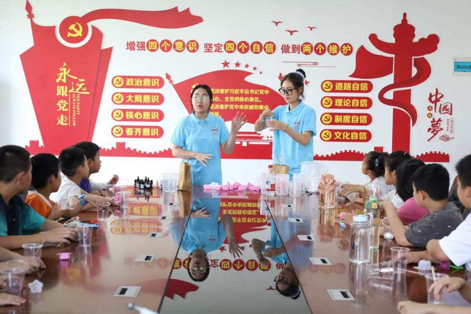 “团队选取了石膏制作和虹吸现象两个实验。这两个实验生动易懂,能帮助孩子将化学知识与生活结合,进而激发他们探索科学的兴趣。”团队负责人之一、化学(师范)专业2023级(4)班的汪岚介绍,筹备上,选用安全易操作材料,例如用烧杯、长吸管等简化虹吸装置。团队还准备了生动的讲稿,以通俗的方式讲解实验,让小朋友感受化学知识的实用价值。