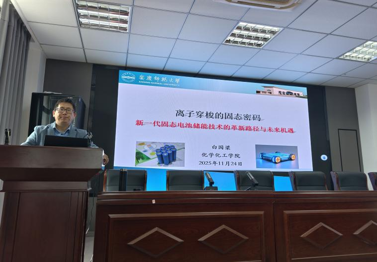 为拓宽员工学术视野、营造浓厚科研创新氛围,2025年11月24日中午,白国梁副教授在bevictor伟德官网401会议室,为老员工科技化学协会成员及相关专业员工作题为“离子穿梭的固态密码:新一代固态电池储能技术的革新路径与未来机遇”的学术报告。