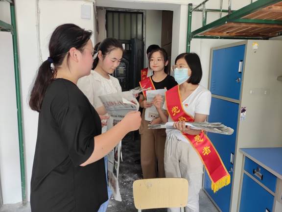 发放校报和安全手册、介绍公司详情、对新生进行安全教育……一根红绶带让一批特殊的志愿者聚集在一起,共同为新生服务,他们正是化学化工公司党员示范岗的志愿者。从男生宿舍到女生宿舍,从二楼到五楼,从上午九点到下午五点,近40名师生党员分别去了公司480余名新生的每一个宿舍。