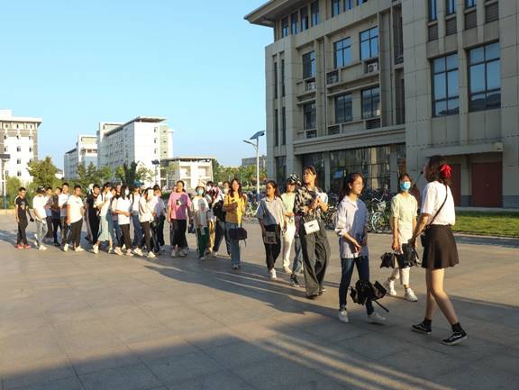 “大家注意看,这里就是我们的教学楼。”下午四点,材料化学专业2019(3)班的韩庆楠带着四十余名新生,“浩浩荡荡”地从西门走向东门。新生在她的带领下,来到了图书馆、教学楼等地,了解了如何借书、取快递等学习、生活问题,也对公司的不同区域有了初步的了解。