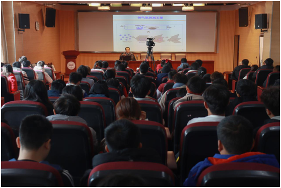 除了专业知识的讲解,李景虹还分享了他的课题组围绕石墨烯和石墨烯复合材料的可控合成及其在电化学分析与生物传感相关应用的研究思路,启发师生们如何展开科研设计。在提问环节,他还就师生们提出的问题给予了详细的解答,报告会现场氛围热烈。