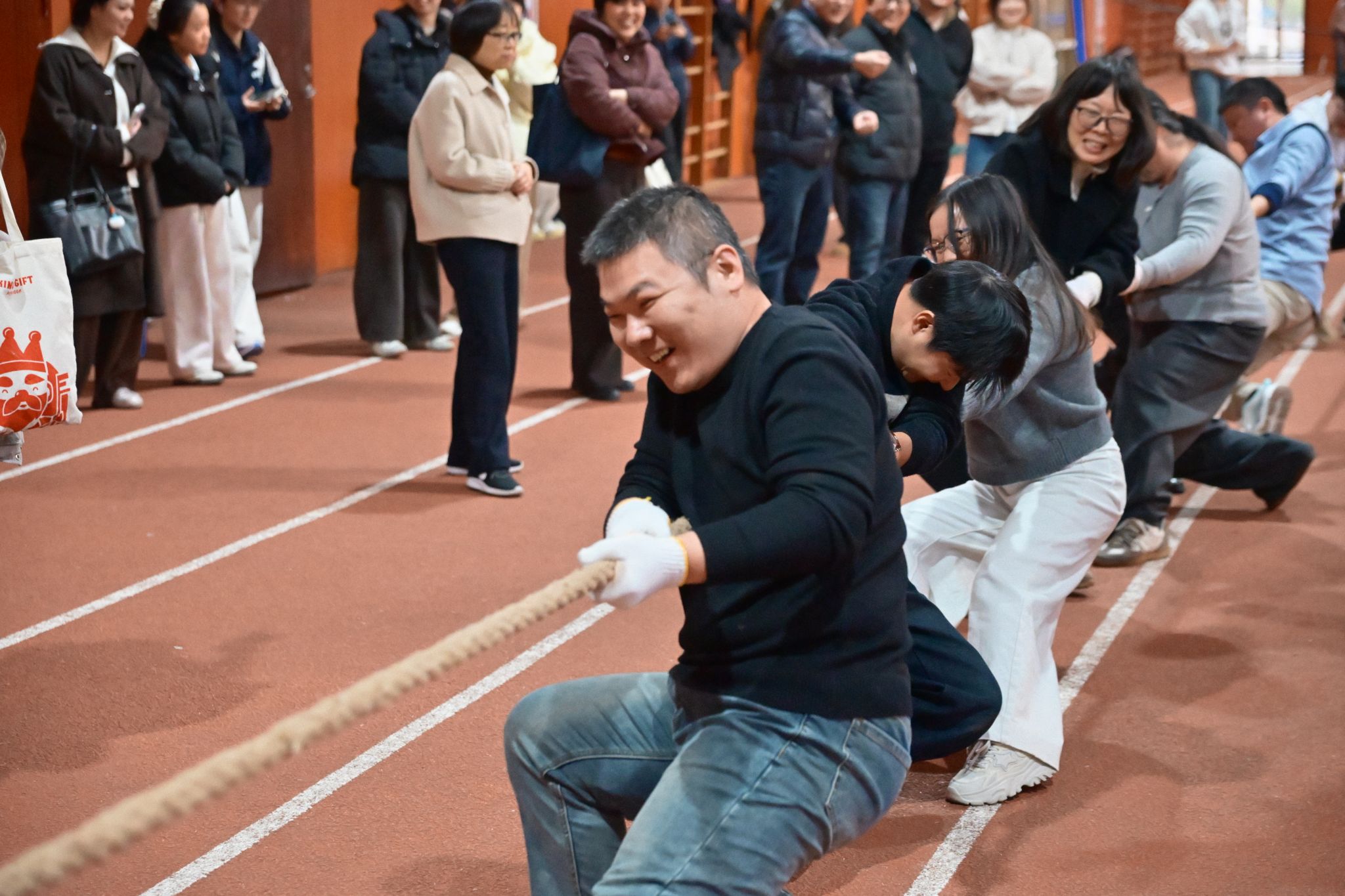 赛场上,各战队队员默契配合、奋勇争先,加油声、欢呼声此起彼伏,欢声笑语洋溢全场。无论是托球跑的精准传递,还是拔河比赛的全力较量,都展现了教职工们团结协作的精神风貌。