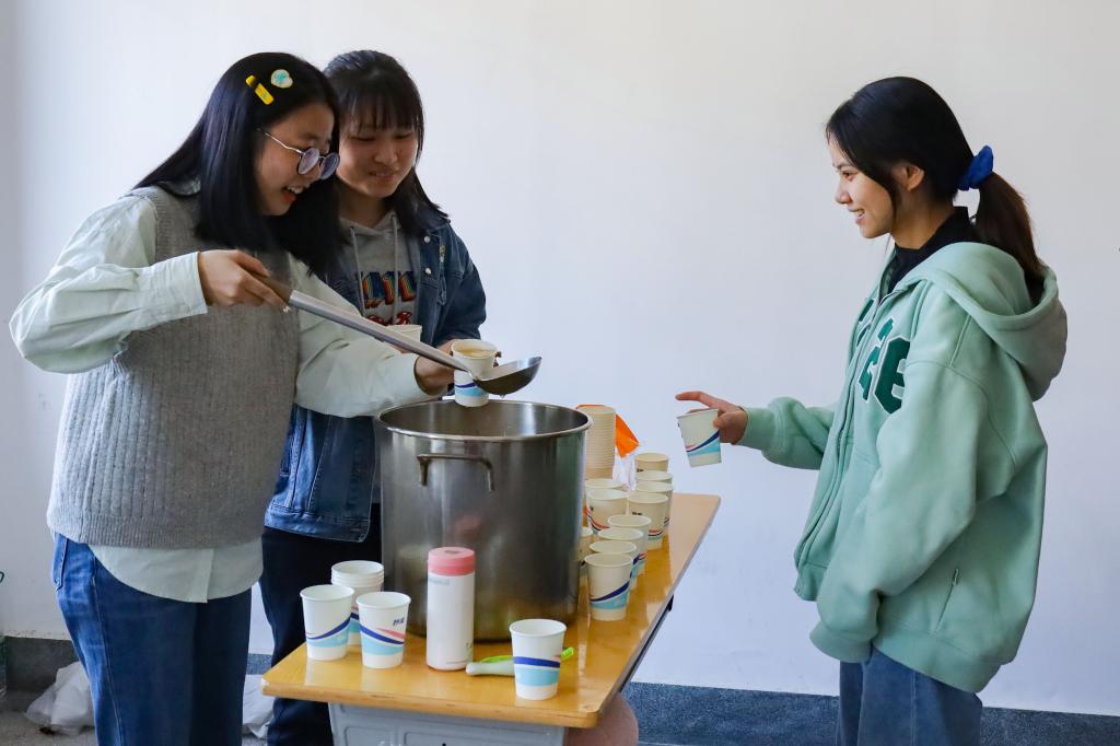 润肺甜汤与整洁的教室给了化学师范专业2019(3)班的戴欣雨双重“惊喜”。天气逐渐变冷,考研时间也日渐迫近,焦虑不时萦绕在戴欣雨的心头。“全院师生都在为我们考研创造良好的学习环境,这让我觉得我并不是在孤军奋战,公司在用各种暖心的方式鼓励与陪伴我们。”戴欣雨坦言这份甜汤一扫多日的焦虑情绪,让她充满了前进的动力。