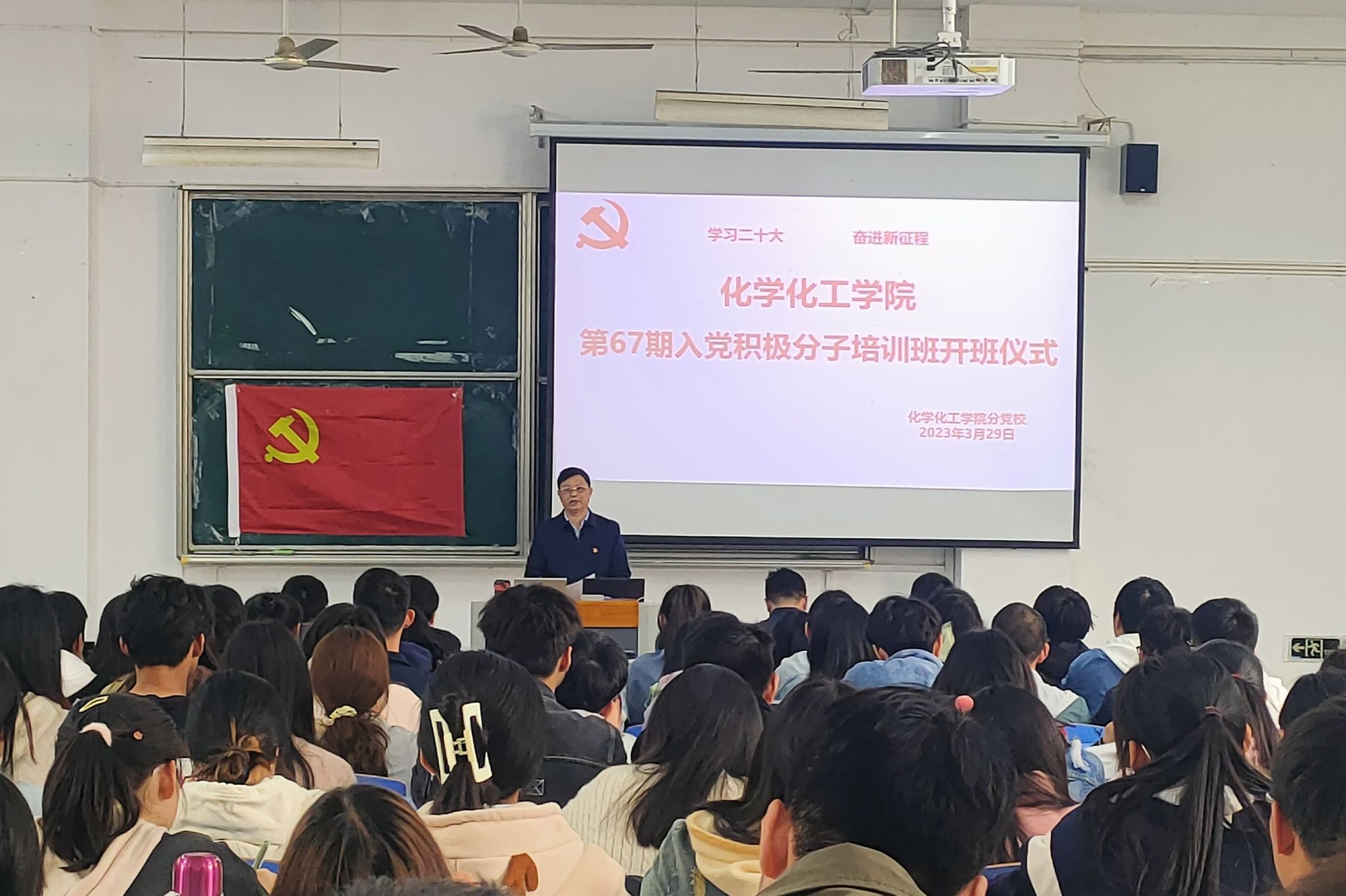 开班仪式在庄严肃穆的《国歌》歌声中拉开帷幕,李新建作动员讲话。他强调,参加入党积极分子培训班培训,是上好入党“第一课”,当好党的生力军的第一步。全体学员要加强政治学习,提高政治站位。在学习中大力弘扬理论联系实际的学风,把理论学习同日常学习、工作、生活结合起来,同实现中华民族伟大复兴的中国梦的伟大实践结合起来;要坚定理想信念,端正入党动机。自觉做共产主义远大理想的坚定信仰者和忠实实践者,坚持学思用贯通,知信行统一,把习近平新时代中国特色社会主义思想转化为坚定理想、锤炼党性和指导实践、推动学习的强大力量;要勇担责任使命,发挥表率作用。立足新起点,思想上要更加积极主动,争做学习的模范,做守纪的模范,做优良作风的模范。