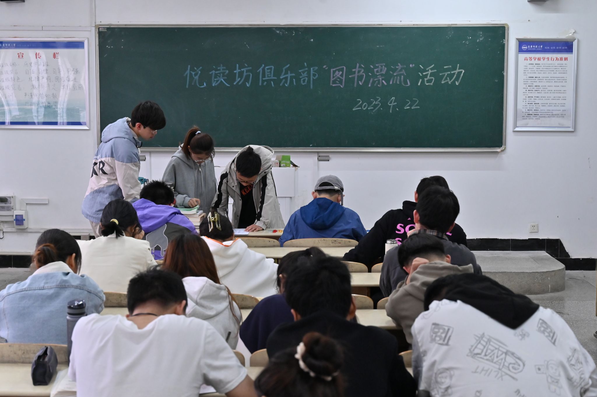 近日,bevictor伟德官网悦读坊俱乐部在文渊楼204教室开展世界读书日——图书“漂流”活动。30余名成员参与活动,共同开启一起“悦”读的美好时光。