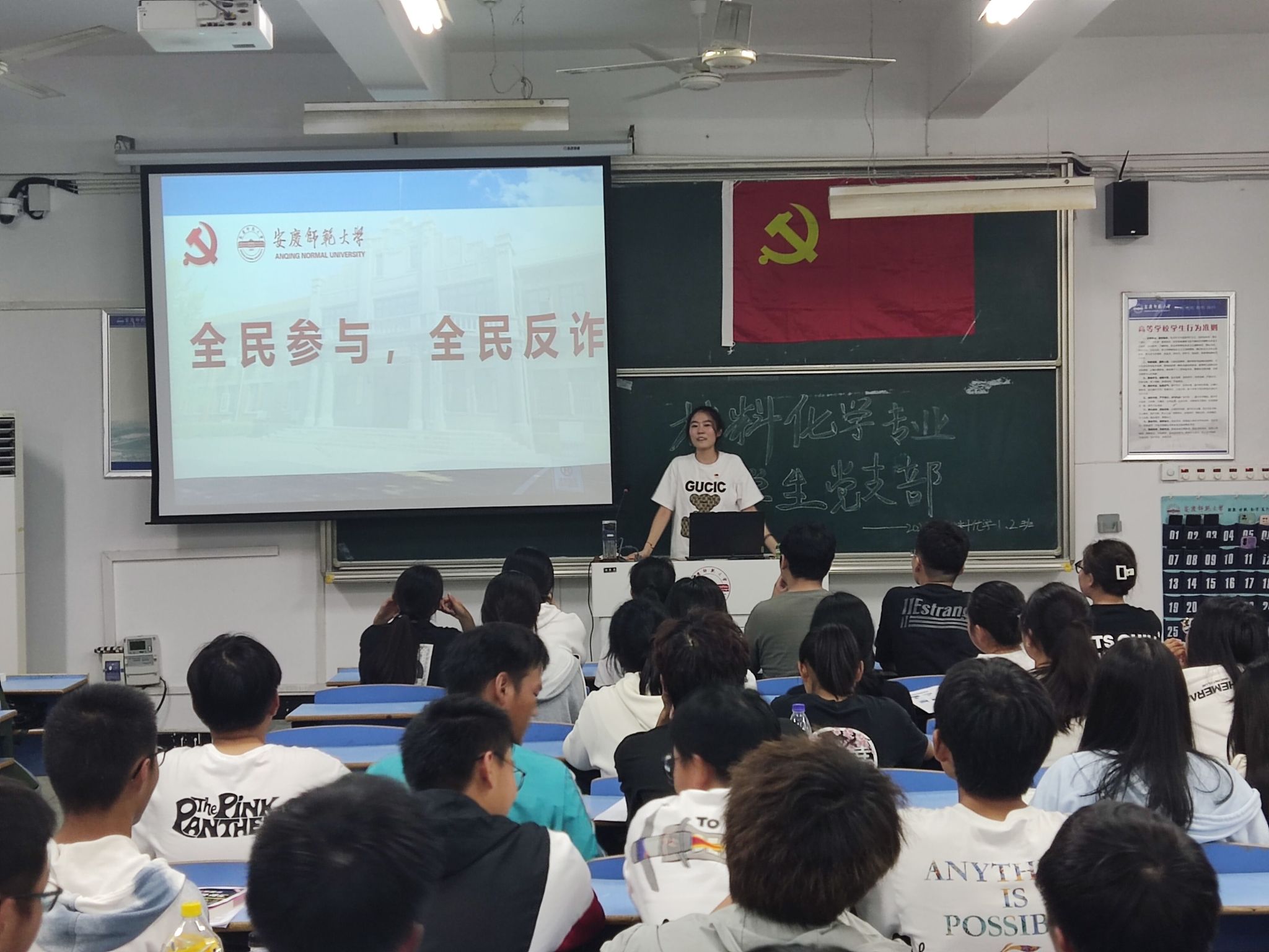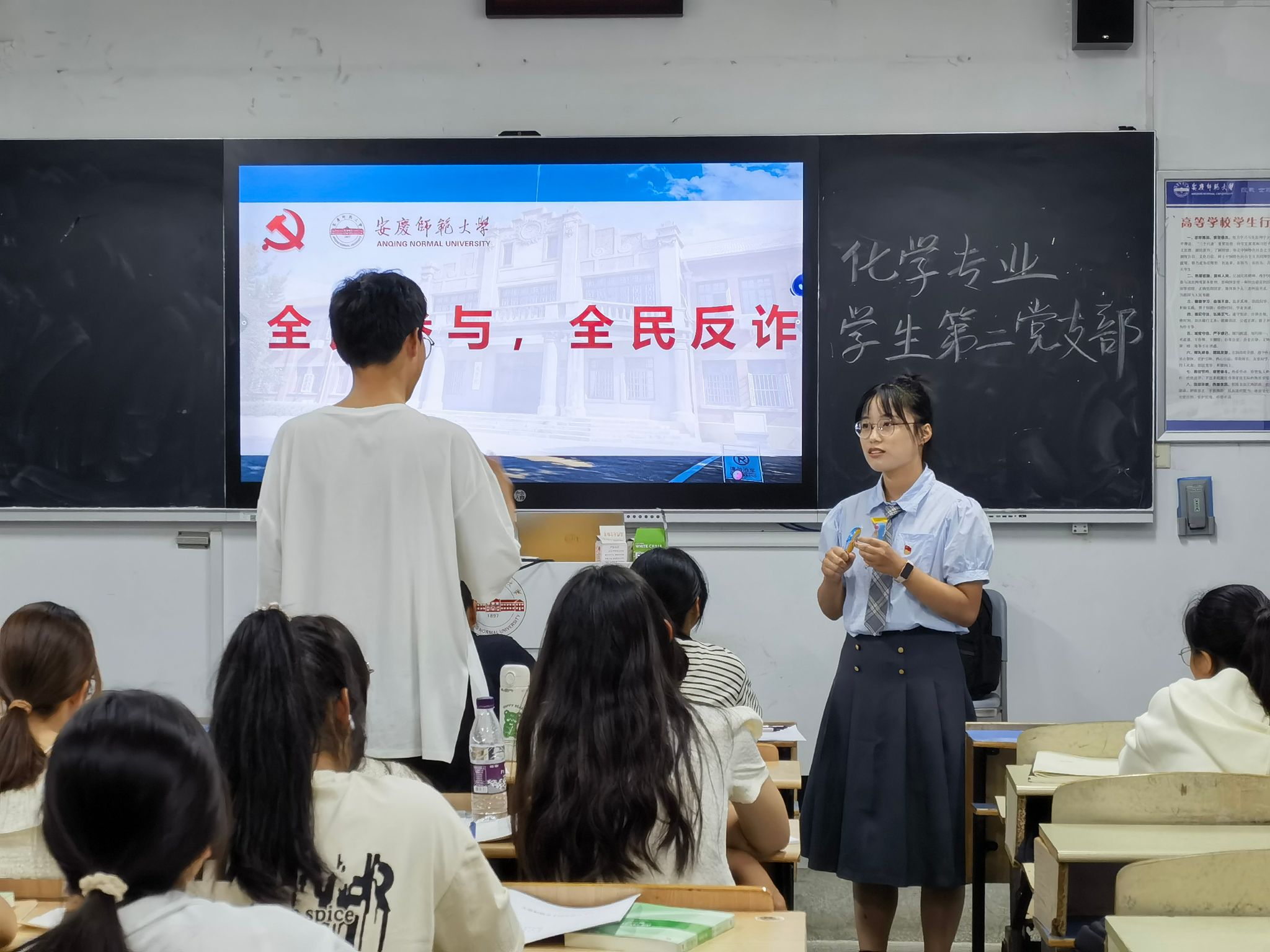 此外,员工党员们发挥模范带头作用,向新生班级开展了反诈宣传教育,围绕十大反诈公式、真实案例和反诈微电影详细分析介绍了新型网络诈骗手段,向同学们普及了各类形式诈骗的常见手法,进一步提高新生反诈骗意识和安全防范能力,推动形成“师生共筑无诈公司”的浓厚氛围。