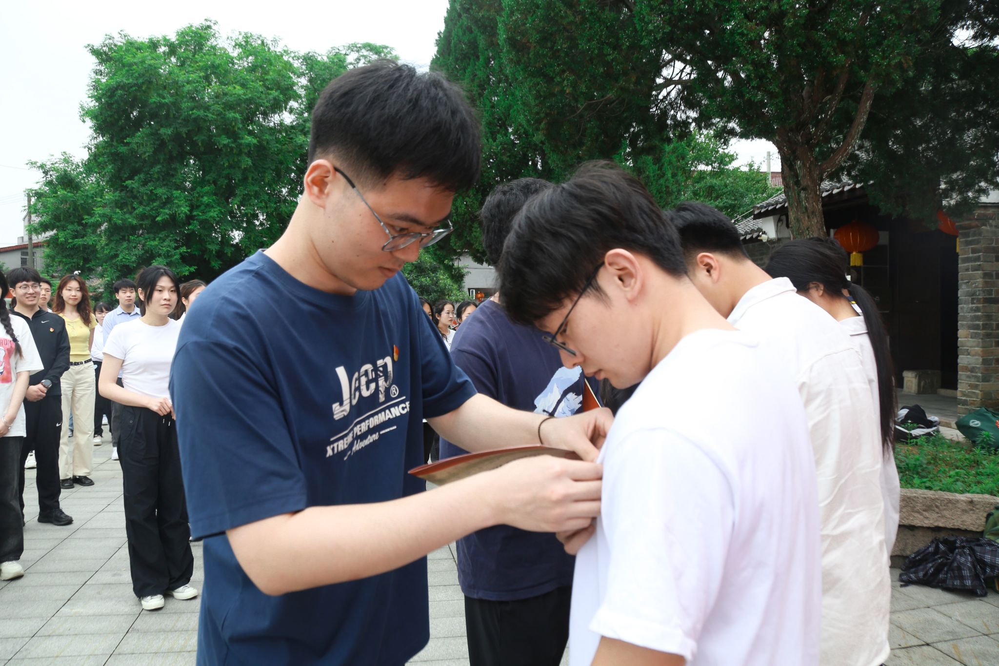 庄严肃穆的入党宣誓仪式后,老党员代表缓步走到新党员代表的面前,为其佩戴党员党徽并发放政治生日卡。老党员代表用双手拿起党徽别在新党员代表的胸前,调整党徽的位置,确保它端正地佩戴在左胸中央。“这是我第一次作为老党员代表为新党员佩戴党员党徽,作为一名即将离校的毕业生党员,我感到无比神圣,一股传承之感油然而生。”毕业生党员王娜表示,党的事业需要一代代人接力奋斗,而新党员就是这份事业的新希望、新力量。